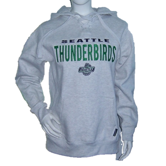 Description – UNISEX hoodie with SEATTLE THUNDERBIRDS embroidered on front in navy, green. Team logo and pouch pocket.